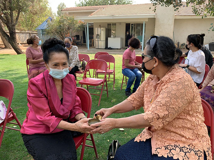 วันศุกร์ ที่ 31 ธันวาคม 2564 เวลา 10.30 น ร่วมถวายภัตตาหารเพล โดยเริ่มต้นไหว้พระ สมาทานศีล หลังจากเพลแล้วนั้นเวลาภาคบ่าย ขอเชิญร่วมสวดมนต์ทำวัตรเย็น สวดเจริญพุทธมนต์ และสวดธรรมจักรกัปวัตน สวดมงคลสูตรอื่นๆ เช่น รัตนสูตร - กรณียะเมตตสูตร โพชฌังคปริต พร้อม เจริญสมาธิภาวนา แผ่เมตตาให้สรรพสัตว์ ลั่นฆ้องชัยมงคล 9 ครั้ง เพื่อต้อนรับศักราชใหม่ พระสงฆ์ทั้งนั้นสวดพุทธมนต์ชัยมงคลคาถา ประพรมน้ำพุทธมนต์แก่ผู้มาร่วมงาน เป็นอันเสร็จพิธี