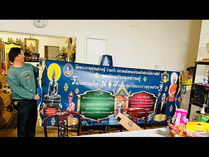 สุขสันต์วันสงกรานต์ ฉลองปีใหม่ไทย ขอน้ำใจพี่น้องของเราทุกท่านได้ให้การสนับสนุนบุญสงกรานต์วัดของเราโดยพร้อมเพียงกัน ณ วัดพระธาตุทุ่งเศรษฐี เมืองแลงแควเตอร์ แคลิฟอร์เนีย ประเทศสหรัฐอเมริกา เลขที่ 6763 E Avenue H, Lancaster, CA 93535 Tel: (661) 946-3335 และ (562) 249-3789 (ถ้าส่งเช็คไปทำบุญก็ตามรายละเอียดที่แสดงไว้นี้คือ Payable to : Buddhist meditation Society) รูปขอจำเริญพร