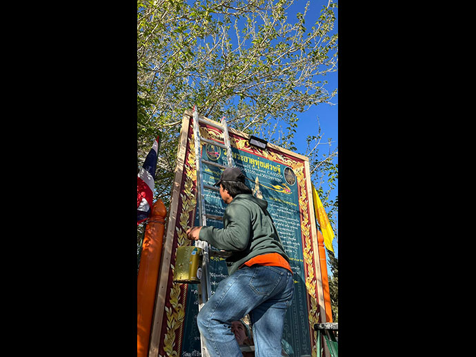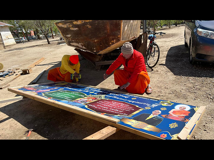 การเตรียมลานพิธีไว้ เพื่องสีสันบรรยากาศบุญสงกรานต์ ปีนี้ท่านใดยังไม่ได้มาสรงน้ำพระขอศีลขอพร ทางวัดพระธาตุทุ่งเศรษฐี จัดสรงน้ำหลวงพ่อเพชรมีชัย รดน้ำดำหัว ในวันอาทิตย์ที่ 24 เมษายน ศกนี้ งานบุญครั้งนี้ได้รับความเมตตาจากพระเดชพระคุณ พระวิเทศธรรมคุณ รองประธานสมัชชาสงฆ์ไทยในสหรัฐอเมริกา เดินทางมาเป็นประธานฝ่ายสงฆ์