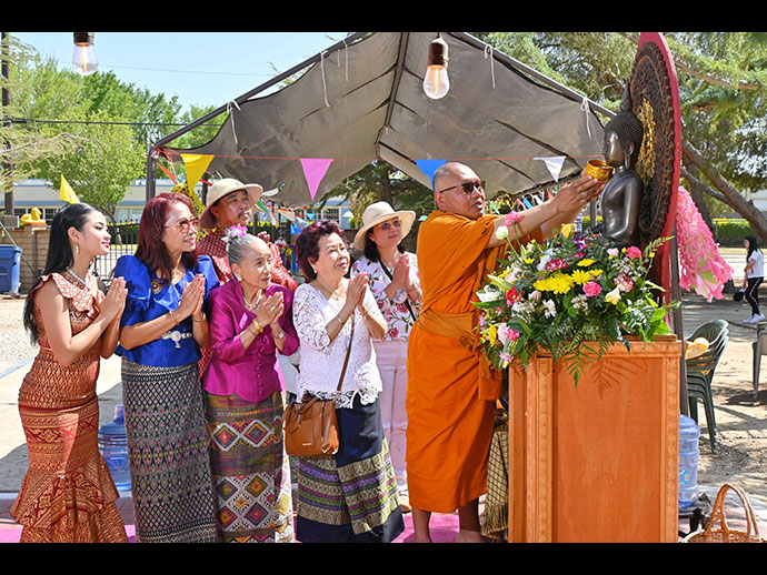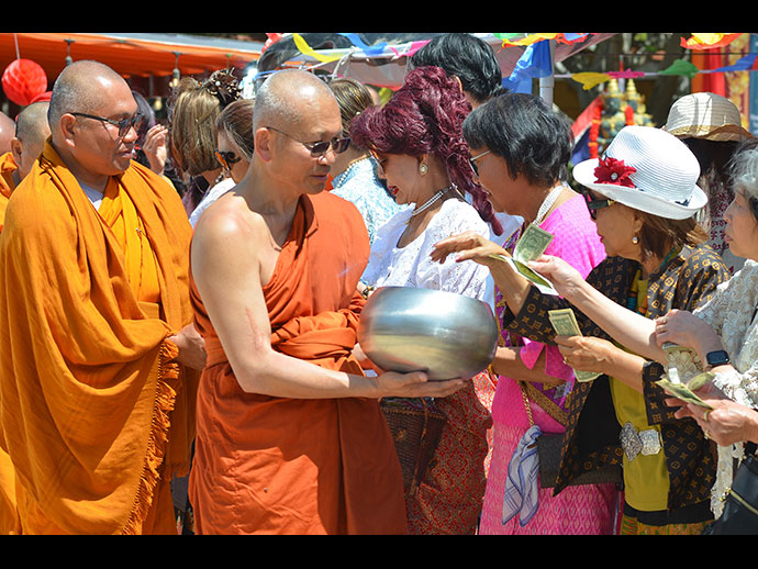 สงกรานต์วัดพระธาตุทุ่งเศรษฐี เมือง Lancaster รัฐ California เมื่อวันอาทิตย์ที่ 24 เมษายน ที่ผ่านมา พิธีสรงน้ำหลวงพ่อเพชรมีชัย ขนทรายเข้าวัด ถวายผ้าบังสุกุลอุทิศญาติ ผู้วายชนม์ ฯ และทอดผ้าป่าการกุศล สามัคคี ฯ
