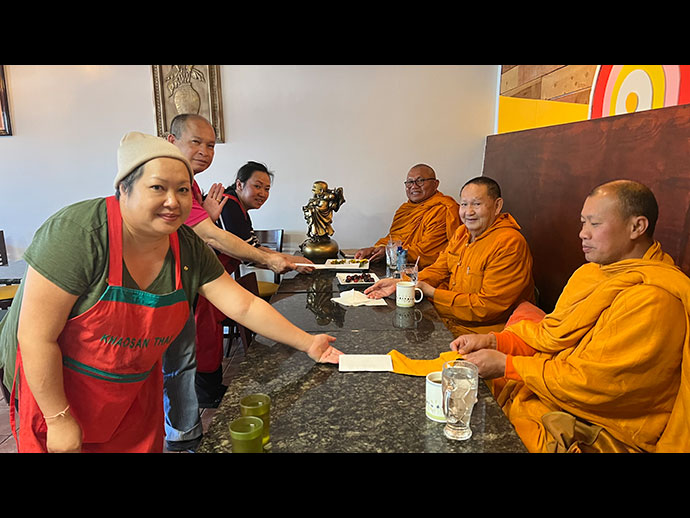 ท่านพุทธศาสนิกชนผู้เจริญทุกท่าน ขออภัยวันนี้ ขอใช้ภาพประกอบบทความที่มิได้มีความเกี่ยวข้องหรือพัดพ้องกันแต่ประการใด พอดีมาเจริญพุทธมนต์ฉันเพลแถวเมือง Santa Anna ร้านข้าวสารไทย พอดีตรวจสอบว่าบทความที่ส่งตอนเช้า Not Completed เลยต้องแวะมาที่ Office ทำงานอยู่กับท่านอาจารย์สุพจน์ สาริบุตร