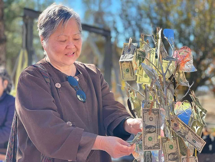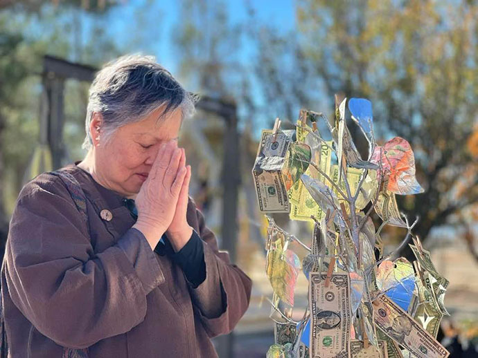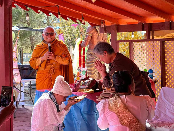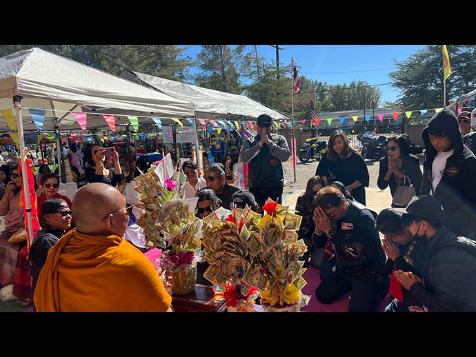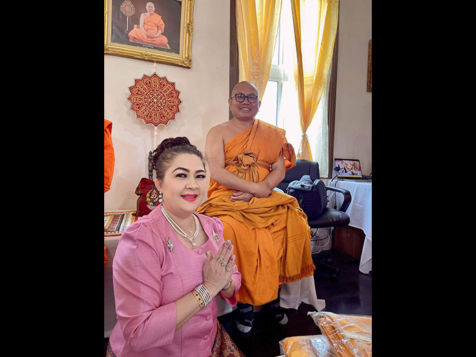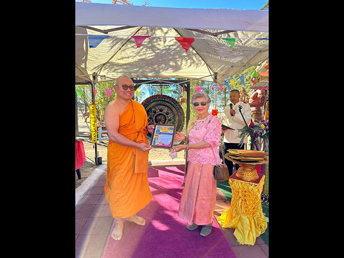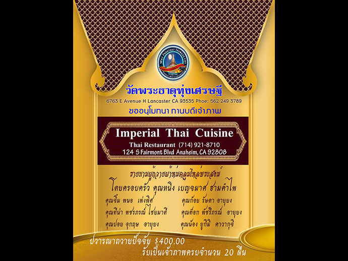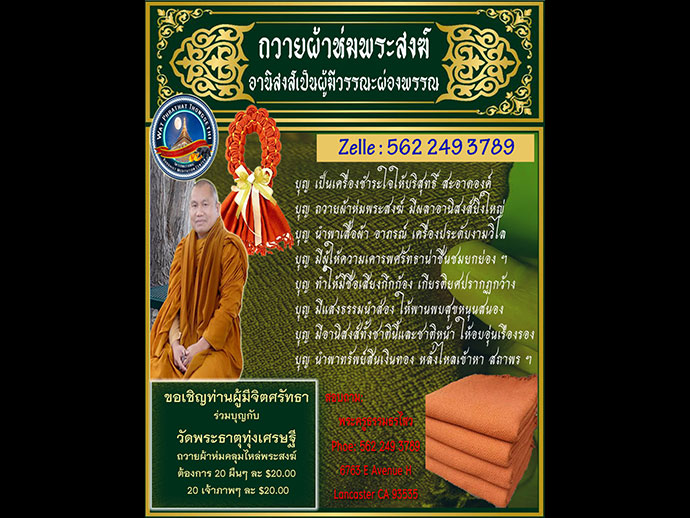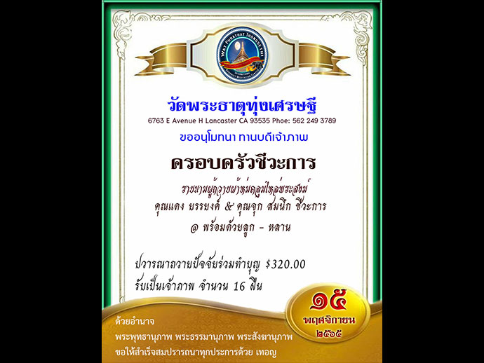 ด้วยอำนาจพระพุทธานุภาพ พระธรรมานุภาพ พระสังฆานุภาพ ขอให้สำเร็จสมปรารถนาทุกประการด้วย เทอญ วัดพระธาตุทุ่งเศรษฐี 6763 E AVENUE H., LANCASTER, CA 93535-7849 Donation check payable to "Buddhist Meditation Society" รูปขอจำเริญพร