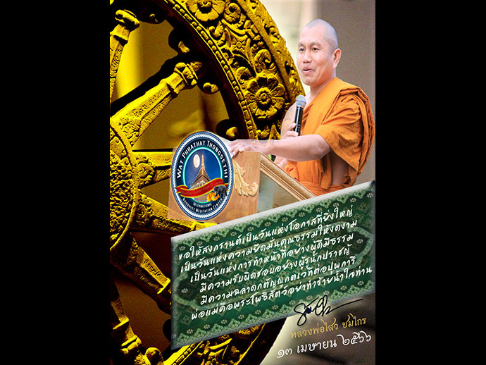 ขอเจริญพรท่านสาธุชนทั้งหลาย “บุญสงกรานต์พัฒนาสู่คุณธรรม บุญเหนี่ยวนำยึดโยงให้เราตั้งมั่นในศีลธรรมอันดี บุญทำให้เราคิดดี พูดดี ทำดี บุญเกิดขึ้นได้ด้วยความสะอาดทางกายทางจิต ตอนนี้หลายท่านก็บอกว่าอากาศสงกรานต์ที่เมืองไทยนั้นร้อนมาก ส่วนทางแคลิฟอร์เนียนั้นอากาศจัดสงกรานต์ดีมากเลย เย็นสบายๆ ซึ่งเป็นเรื่องธรรมดา ธรรมชาติเป็นเช่นนี้ หากเราทำงานไปตามปกติ ไม่รู้สึกว่ากระวนกระวาย จิตใจมันเป็นปกติ เหงื่อมันออกมาเป็นเรื่องของร่างกาย แต่ว่าใจนั้นไม่มีอะไรเปลี่ยนแปลง นั่งทำงานได้ปกติตลอดเวลา อันนี้แสดงว่าเรารู้จักปรับจิตใจต้อนรับสถานการณ์นั้น แล้วก็ไม่เป็นทุกข์เพราะเรื่องนั้น หน้าที่ความรับผิดชอบ การเคารพหน้าที่คือการเข้าใจธรรมชาติ การเข้าใจธรรมชาติคือคุณธรรมอย่างสูง