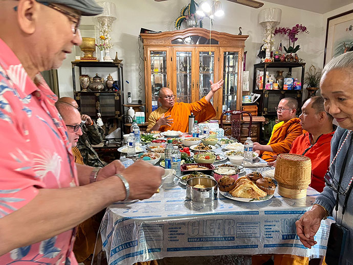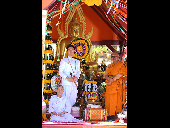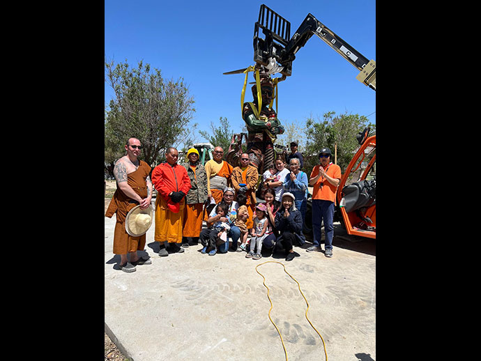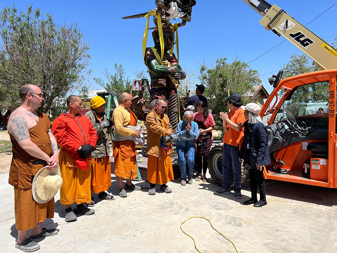 ประการที่ 4 การประดิษฐานตั้งองค์ประกอบ 2 ชิ้นส่วนให้เข้ากันเป็นเนื้อเดียวกันนั้นก็เล่นเอาหนักใจตามๆ กัน เพราะไม่ทราบว่าจะหาทางออกที่ง่ายด้วย ดีด้วย ประหยัดด้วย หลวงพ่อไสวเหมือนดังจะสัมผัสอะไรได้บางอย่างจากการรวบรวมสมาธิคิดหาวิธีว่าจะทำอย่างไร โดยวิธีไหน สุดท้ายก็ได้กำลังจิตอาสาที่เกิดขึ้นและรวมตัวกันโดยธรรมภายใต้ความหมายของคำว่า "เวยยาวัจจกิจ" กิจที่สำเร็จโดยจิตอาสา ขอบคุณคณะสงฆ์วัดพระธาตุพนม อเมริกา นำโดยท่านพระมหาเลอเดช วรวังโส เจ้าอาวาส (เปรียญธรรม 9) ญาติโยมเมืองแลงแคสเตอร์ / เมืองปาล์มเดล / เมือง โรสามอนด์ และที่มาจากตัวเมือง นครลอสแองเจลิส