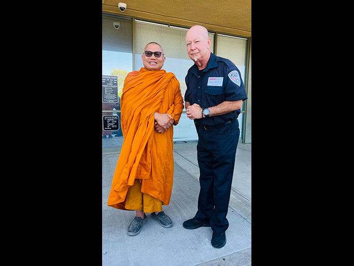 ในส่วนกิจการงานพระศาสนาในต่างประเทศ ที่จะกล่าวถึงคือประเทศอเมริกา ในเขตปริมณฑลนครลอสแองเจลลิส ปัจจุบันก็มีศูนย์นัดพบของคนไทยที่นำพาเอาอาหารไทยมาตั้งโต๊ะวางขายวันเสาร์ตอนเช้า ประมาณ 7.00 - 9.30 น. ที่หน้าร้านเดะภูเขา ถนน Hollywood Blvd. เยื้องๆ อาคารไทยแลนด์พลาซ่าตลาดสีลม ได้จัดให้มีการใส่บาตรมาตั้งแต่ที่ทางการอนุญาตหลังจากที่ โควิด 19 เป็นโรคอยู่ในการควบคุมได้ ปัจจุลบันไม่ถือว่าเป็นโรคระบาดทางสังคมแล้ว