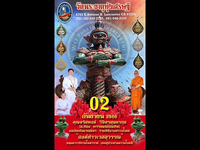 ขอจำเริญพรท่านผู้สนใจในธรรมทั้งหลาย เมื่อวันที่ 15 กรกฎาคมที่ผ่านมา ทางวัดพระธาตุทุ่งเศรษฐี ได้มีบุญพิธีเบิกพระเนตร องค์ท้าวเวสสุวรรณ ที่ใหญ่ที่สุดในเมริกา เหตุจากวันงานบุญพิธีเบิกพระเนตร องค์ท้าวเวสสุวรรณ พิธีในวันนั้นมีประธานจุดเทียน นวหรคุณ และมีคำถามว่า