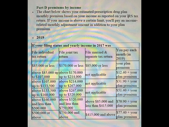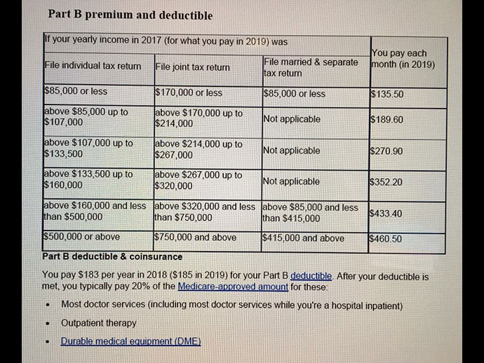 เมื่อวันที่ 12 ตุลาคม 2018 หน่วยงานที่รับผิดชอบเกี่ยวกับประกันสุขภาพ Centers for Medicare & Medicaid Services-MCS ประกาศอัตราเบี้ยประกันใหม่สำหรับปีหน้า 2019โดยเพิ่มค่ารักษาพยาบาล part B แต่ลดค่ายา part D เล็กน้อย…ดูจากตาราง…การคำนวนเบี้ยประกัน ใช้ยอดเงินรายได้ปี 2017 (Modified Adjust Gross Income)