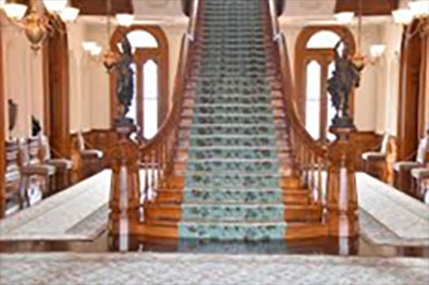 สิ่งแรกที่พึงสังเกตคือขั้นบันได (staircase) ที่ใช้ไม้ใหญ่ โคอา (Koa) ที่สูงถึง ๓๐ เมตร กว้าง ถึง ๓๕ เมตร มีลายสวย เป็นพันธุ์ไม้ฮาวายที่ชาวฮาวายในอดีต นำมาสร้าง wa’a หรือเรือ คานู (canoes) ขั้นบันไดนี้