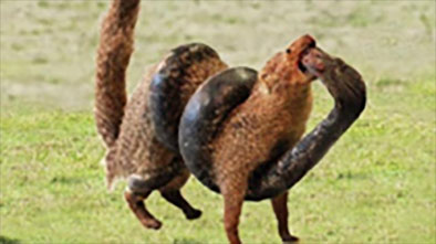 “พังพอน” หรือ Mongoose (พหูพจน์ Mongooses ไม่ใช่ Monguese) กับ “งู” สัตว์สองชนิดนี้เป็นคู่ปรับกันตามธรรมชาติ เพราะ งู เป็นอาหารจานโปรดและศัตรูคู่แค้นของพังพอน ส่วนงูก็เป็นสัตว์ที่มีสัญชาตญาณการต่อสู้สูง แม้จะต้องเจอกับศัตรูที่ตัวใหญ่กว่า เมื่อพังพอนเจอกับงู มันจะพองขนเพื่อเพิ่มขนาดให้ดูใหญ่ขึ้น และต่อสู้โดยไม่มีความเกรงกลัวเพราะมีภูมิคุ้มกันจากพิษงูที่ได้รับมาโดยธรรมชาติทำให้ทนพิษงูได้ในระดับหนึ่ง แต่ถ้าเจอในปริมาณมากๆ ก็ถึงชีวิตได้เช่นกัน ส่วนงูก็อาจเสียท่าพังพอนได้เช่นกันถ้าถูกมันกัดเข้าที่คอ ฟันของพังพอนนั้นแหลมคมมาก