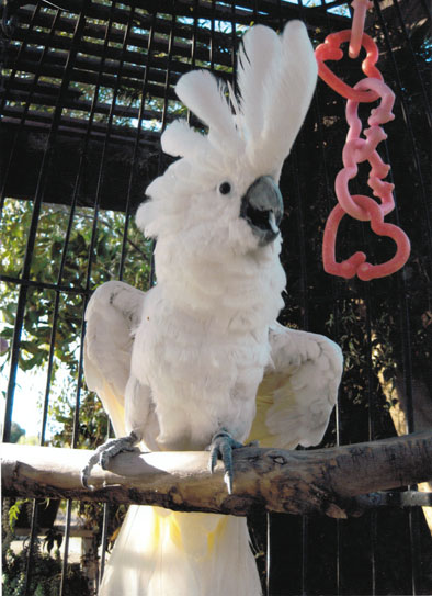 โมเม้นท์แรกไม่ได้ตื่นตระหนก...นึกว่า...มันเอาปากง้างคลิปที่หนีบประตูกรงออกมาซนอยู่ข้างนอกอีกแล้ว...ก็มันชอบทำแบบนี้อยู่บ่อยๆ นี่นา ฉันชินกับพฤติกรรมของมันดี...รู้อยู่กับใจว่ามันเป็นกระตั้วที่ไม่ชอบอยู่ในกรง...ชอบนัวเนียอยู่กับคน และชอบเดินโชว์อวดร่าง...สำรวจโน่นนี่รอบๆ บริเวณพื้นที่เนินเขาหลังบ้าน โปรดปรานยืนขาเดียวโดดเด่นเกาะเก้าอี้เหล็กยาวข้างสระน้ำเป็นที่สุด อีกมุมที่เธอโปรดเวลาต้องการโลกส่วนตัวคือแอบไต่ขึ้นไปหลบอยู่ใต้ร่มใบครึ้มของต้นไม้ใหญ่ข้างห้องนอนริมสระ....เงียบกริบเชียว บางครั้งฉันตามหาอยู่เป็นนาน...ไม่เจอ ต้องร้องตะโกนเรียกหาหนักๆ เข้า...มันคงจะรำคาญเสียสมาธิการปฏิบัติธรรมละมั้ง...เลยต้องส่งเสียงร้องตอบ “เฮลโหล เฮลโหล...” ให้รู้ว่ามันอยู่ที่ไหน....