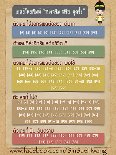 2. การทำนาย “หมายเลขโทรศัพท์ “(รวมทั้งบ้านเลขที่ และทะเบียนรถ) ไม่ใช้พื้นฐานดวงชะตาท่าน เป็นแค่ตัวส่งเสริมหรือฉุดดึงในเรื่องใดๆตามความหมายของเลขนั้นๆ เช่นพื้นฐานดวงท่านรวยและเป็นผู้นำที่ต้องเหนื่อยในชีวิตอยู่แล้ว ควรใช้เบอร์โทรศัพท์ที่หนุนเรื่องคู่ เรื่องความรัก ไม่ใช้เน้นหนุนเรื่องงานให้เหนื่อยเพิ่มไปอีก