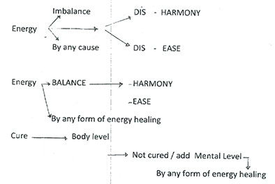 การบำบัดระดับจิต เขาว่าร่างกายคนเรา ประกอบด้วยการประสานงานระหว่างร่างกายกับจิต ก่อให้เกิดการสร้าง ดี.เอ็น.เอ. คือรหัสของเซลล์ ถ้าครอบครัวเคยมีประวัติปวดเข่า ก็ตามมาถึงรุ่นเราต่อไปว่ามักจะะปวดเข่า เพราะจาก ดี.เอ็น.เอ. ไปสร้างโครโมโซม ไปสร้างแกนกลางเซลล์ สร้างส่วนประกอบเป็นเซลล์ เป็นเนื้อเยื่อ เป็นอวัยวะ ถ้าเราบำบัดด้วยระดับร่างกายไม่หาย เพราะมันสืบทอดมาอย่างนั้น ให้เติมการบำบัดด้วยจิตของตัวเองเพิ่มเข้าไป คือรักษาด้วยจิตวิทยา เพราะเราเชื่อว่า You are what you eat. You are what you think. นั่นคือ เพิ่มการบำบัดผ่านรังสีคอสมิคที่มีการส่งคลื่นรอบตัวเราอยู่แล้วให้ทำการบำบัดด้วยระดับ spiritual level นั่นคือส่งกระแสจิตไปทำการบำบัดระหว่างที่ถูนวดหัวเข่าตรงที่เกิดบวมเพราะมีอะไรคั่งอยู่ตรงนั้น ให้สลายเบาบางไปด้วยอำนาจจิตตัวเอง หรืออำนาจจิตของผู้รักษา ดังที่หนังสือของ ดร.โรเบิร์ต เซนนี่ เคยเขียนหนังสือ The Power of Your Own Medicine, 1997