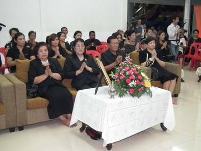 ที่วัดสายไหม จ.ปทุมธานี ช่วงเย็นวันเดียวกัน บริเวณศาลาสองพี่น้อง ซึ่งเป็นสถานที่ตั้งบำเพ็ญกุศล และสวดพระอภิธรรมศพ "เอ๋-พัชรา แวงวรรณ" อดีตนักร้องชื่อดัง วงดิโอเวชั่น ได้มีเจ้าของค่ายเพลง พร้อมด้วยศิลปินและประชาชนได้เดินทาง มางานฟังสวดพระอภิธรรมศพจำนวนมาก