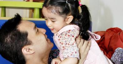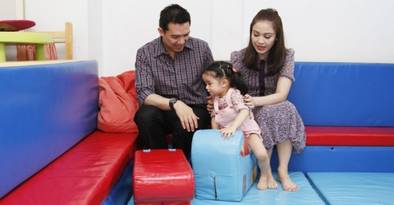 แต่ดูเหมือนว่าลูกสาวคนสวยของทั้งกบและบรู๊คจะเล่นบ่อบอลได้ไม่นาน ก็เปลี่ยนมาเล่นของเล่นใหม่ ที่สร้างเสริมทักษะให้เด็กน้อย โดยมีคุณพ่อกับคุณแม่มานั่งอยู่ข้างๆ จังหวะนี่เอง ทำให้ณดาหันมาหอมกบกับบรู๊ค ว้าว...ว เห็นภาพนี่แล้วน่ารักสุดๆ