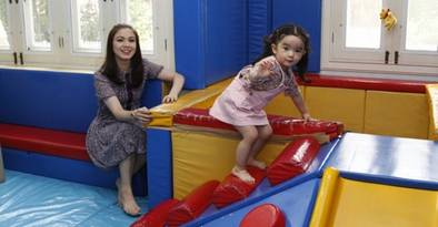 ส่วนณดาที่กำลังเล่นอยู่ในบ่อบอลอย่างสนุกสนาน จู่ๆ ก็ปีนป่ายออกจากบ่อลูกบอลหลากสี แถมยังสไลเดอร์โชว์ให้เราดู แหม...เห็นแล้วขอบอกว่า น่ารักอ่ะ เรียกว่าน้องณดาปีนไปปีนมาวนอยู่อย่างนั้นหลายรอบ ก่อนจะหันมาเล่นบ้านกับคุณแม่กบ