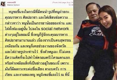 ก่อนหน้านี้ในโลกสังคมออนไลน์ได้มีการแชร์ภาพ ซึ่งอ้างว่า เป็นภาพของคุณบรรหาร ศิลปอาชา กับผู้หญิงน่ารัก ที่ถูกพาดพิงว่าเป็นภรรยาน้อย ซึ่งหลังจากมีภาพหลุดออกมา เจ้าตัวจึงออกมาขอชี้แจงข้อเท็จจริงในประเด็นดังกล่าว
