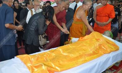 นางหยก ภรรยาครูก้าน เผยว่า สำหรับศพครูก้าน จะตั้งสวดอธิธรรมที่วัดไร่ขิง พระอารามหลวง ไปจนถึงวันที่ 20 ต.ค. 56 เป็นเวลา 15 วัน จากนั้นก็จะเก็บเพื่อรอ โดยทางเจ้าคุณแย้ม แจ้งให้ทางครอบครัวทราบว่า จะมีการขอพระราชทานเพลิงให้ เพราะถือเป็นบุคคลที่ทำประโยชน์ให้กับสังคม โดยกำหนดพิธีพระราชทานเพลิงในวันที่ 20 พ.ย.56 ในระหว่างที่เสร็จสิ้นงานสวดอภิธรรมศพ 15 วันแล้ว ก็จะเก็บศพไว้ที่วัดไร่ขิงก่อน เพื่อรอไฟพระราชทานเพลิงตามที่เจ้าคุณแย้มสั่ง
