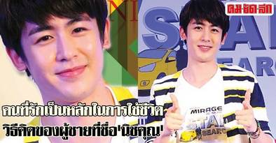 มีคำสอน หรือเครื่องเตือนใจอะไรที่ทำให้นิชคุณประสบความสำเร็จได้แบบทุกวันนี้ผมว่า ผมคิดถึงพ่อแม่ ครอบครัว และคนที่ผมรักมากที่สุดนะ คนที่ผมรักก็อย่างเช่น แฟนๆ และเพื่อนๆ ของผม คือ ผมพยายามที่จะไม่ทำให้คนเหล่านี้เขาต้องมาผิดหวังในตัวผม ผมพยายามไม่ให้เขาต้องมาขายหน้าเพราะตัวผม ผมว่าเวลาที่ผมนึกถึงพวกเขา แค่นี้มันก็ทำให้ผมมีพลัง มีกำลังใจในการทำงาน สำหรับผมแล้วครอบครัวคือแรงผลักดันที่ดีที่สุด และเป็นกำลังใจที่มีค่าที่สุด ซึ่งผมก็หวังว่าทุกคนจะเอาครอบครัวของตัวเอง และคนรักของตัวเองมาเป็นหลักในการที่จะทำทุกสิ่งทุกอย่างในชีวิต แล้วก็จะทำให้ชีวิตประสบความสำเร็จได้