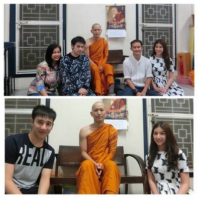 “ท่านบวชวัดบวรฯ ค่ะ ค่อนข้างเงียบสงบด้วยค่ะ แล้วก็บอกใกล้ๆ วันเลยเพราะถือเคล็ดด้วย ตอนแรกกำหนด 15 วัน แต่ว่าเหมือนท่านซึ้งในรสพระธรรมเลยจะไปวัดป่าต่อค่ะ มิ้นต์ก็ไปกับคุณแม่แล้วก็เพื่อนๆ ในวงการค่ะ ก็ไม่ได้ไปตักบาตรทุกเช้าเพราะไม่ไหวค่ะ เพราะพระบิณฑบาต 6 โมงตรง หนูไปวันแรกวิ่งไปเกือบหลังวัดแล้ว ไม่ทัน ก็เจอคุณแม่คุณพ่อแล้วก็พี่สาวค่ะ ตอนนี้ท่านก็อยู่วัดบวรฯ แล้วก็จะไปวัดป่าต่อ เห็นว่าไปแถวสระบุรีค่ะ ตอนนี้ก็ยังไม่มีกำหนดสึกเลยค่ะ ท่านไปวัดป่าก็คงอยากสงบ และได้อยู่กับตัวเอง นั่งกรรมฐาน พออยู่กรุงเทพฯ เพื่อนๆ ไปเยี่ยมกันเยอะ”