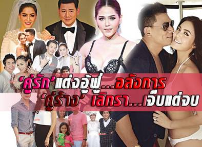 ต้องยกให้คู่รักสุดอลังการงานสร้าง พิ้งกี้-สาวิกา ไชยเดช กับ เพชร-อิทธิ ชวลิตธำรง ที่ปุ๊บปั๊บคบหากันไม่กี่เดือน ก็ทำเอาเซอร์ไพร้ส์กันทั้งเมือง สวมแหวนเพชร 7 กะรัต แต่งงานกันไปเมื่อ 12 ก.ย. ที่โรงแรมดุสิตธานี พัทยา อีกคู่ที่ฟ้าแลบไม่แพ้กัน หนีไม่พ้นต้องพูดถึงคู่ นิว-เชื้อชาติ วงศ์สวัสดิ์ กับ เปิ้ล-ภารดี อยู่ผาสุข ที่เพิ่งจะเปิดตัวควงกันไปงานแต่งงาน หนุ่ม-คงกะพัน แสงสุริยะ แต่หลังจากนั้นไม่นาน ทั้งคู่ก็ประกาศแต่งงานกันในวันที่ 25 ต.ค. ที่โรงแรมแมนดาริน โอเรียนเต็ล ด้วยสินสอดจัดหนักมูลค่ากว่า 10 ล้านบาท พร้อมทั้งยืนยันไม่มีท้องก่อนแต่งแน่นอน