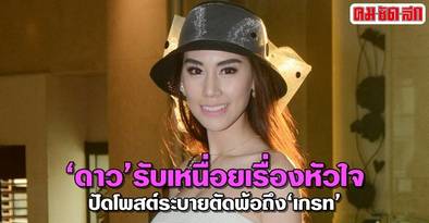 "คือบอกเลย ไม่ได้โยงหาใครทั้งนั้น แค่ทะเลาะกับเพื่อนเท่านั้น ถ้าหนูจะดราม่าหรือตัดพ้ออะไร คงไม่โพสต์ลงอินสตาแกรม กับไทม์ไลน์หรอก หนูรู้ว่ายังไงเดี๋ยวคนเขาก็จับไปโยงประเด็นไปเป็นอย่างอื่นอยู่ดี ถ้าหนูจะว่าใครหนูไปโพสต์ว่าเขาตรงๆ เลยจะดีกว่า แต่ข้อความนั้น หนูลบไปหมดแล้ว จริงๆ ส่วนหนึ่งก็กลัวหลายคนจะเข้าใจผิด ถามว่าตอนนี้กับพี่เกรทและหนูสถานะคืออะไร ตอนนี้หนูกับเขา เราไม่ค่อยได้เจอกันแล้ว นานๆ จะได้ทักทายกันสักทีหนึ่ง ถามว่ายังคุยกันได้มั้ย หนูกับเขา เรายังคุยกันได้ไม่มีอะไร (ช่วงนี้ผอมลงมีคนบอกว่าเป็นเพราะเกรท) ไม่เกี่ยวเลย ไม่น่าจะเกี่ยวกับพี่เกรทจริงๆ นะ แต่เป็นเพราะเราตั้งใจจะลดน้ำหนักจริงๆ เพราะช่วงถ่ายรอยฝันตะวันเดือด เราแก้มเยอะไป" ดาวกล่าว
