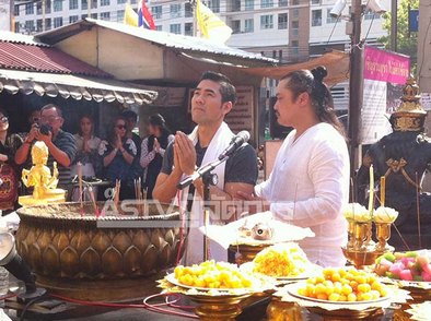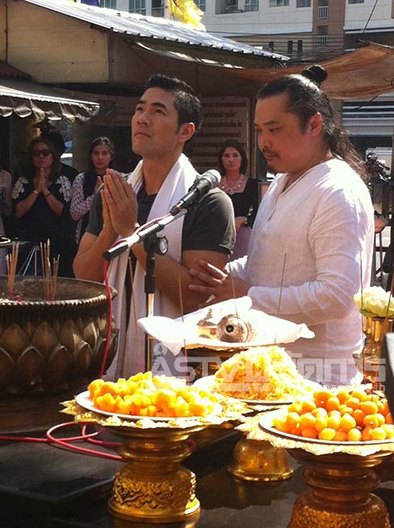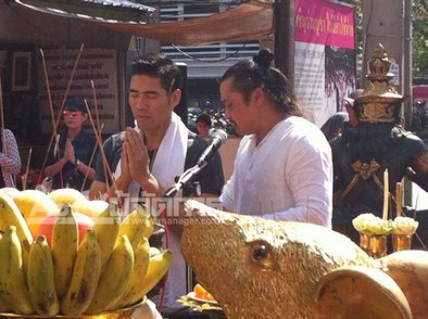 “วันนี้ก็มาแก้บนนะครับ 2 อาทิตย์แล้วบนไว้ว่าอยากจะได้ดีเจที่จะคอนเฟิร์มมาเมืองไทย ก็มี Deadmau5 , Afrojack เพิ่งคอนเฟิร์มมาได้เมื่ออาทิตย์ที่ผ่านมานิเอง วันนี้ก็เป็นฤกษ์ที่ดีก็เลยมาแก้บนตอน 9.30 น.มันยากโคตรเลยครับเพราะว่าดีเจที่จะมาไทยเนี่ยช่วงสงกรานต์ตารางงานมันแน่นอยู่แล้ว ตารางมันไม่ลงตัวไงว่าตกลง 11 หรือ 13 ซึ่งตอนนี้เนี่ยมันเป็นสิ่งที่เราคุยกันมาเป็นเดือนแล้วมันไม่ได้ข้อสรุปสักที ผมก็นั่งที่ประชุมแล้วคือคนเขาต้องการจะรู้ว่าเขาต้องซื้อบัตรมาร่วมวันไหน เพราะมันมี 4 วันก็เลยมันประกาศไม่ได้ วันที่13 เพราะ Afrojack ยังไม่คอนเฟิร์ม เขาบอกต้องรอ แล้วผมก็บอกว่านั่นคือคำตอบที่ดีที่สุดคือต้องรอเหรอ ครับต้องรออย่างเดียว ก็เลยตัดสินใจมาบนพระพิฆเนศเลยละกัน จริงๆ มาบนแค่สองครั้งเองครับชีวิตนี้ ก่อนหน้านี้คือเมื่อ 10 ปีที่แล้วบอกว่าขอร้อยล้าน ซึ่งก็มาแก้บนนานแล้วนะครับ ครั้งนี้เป็นครั้งที่สองทุกคนก็ถามว่าบนอะไรเหรอพอบอกเขาก็ถามบ้าเปล่า หลังจากบนเสร็จก็ได้คำตอบอีกวันหนึ่งเลยครับ”