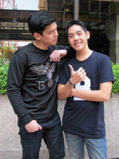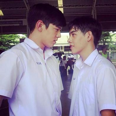 คิดมั้ยว่าทำไมเรากลายเป็นคู่จิ้นกันได้? แก๊ป “ตกใจเหมือนกัน ในบทเราต้องซัดกันตลอด ที่คนเค้าอินกันคือฉากที่ธนามาหาหน้าห้อง ด้วยความที่สายตามันอาจจะผิดจากบทไปบ้าง ก็เลยเป็นอย่างนั้นไป (ยิ้ม)” ต้องจ้องหน้าจ้องตาเขินมั้ย? ตอบพร้อมกัน “ไม่เลย” แก๊ป “เราอยู่โรงเรียนชายล้วนมาทั้งคู่ เลยเป็นเรื่องปกติ” เลยจุดเขิน? เบสท์ “เลยไปนานแล้วครับ ไม่ได้เขินอยู่แล้ว เล่นกับเพื่อนที่โรงเรียนก็เล่นแรง” มีท่าไหนที่ไม่กล้าทำมั้ย? แก๊ป “บางทีใกล้ไปมันก็หวั่นไหว” เบสท์ “เอ๊ะ ใช้คำผิดรึเปล่า (หัวเราะ)” แก๊ป “ผิดๆ ผมหมายถึงมันเกร็ง แต่ไม่ได้คิดอะไร” แก๊ปมีภาพหลุดจุ๊บหนุ่ม? “ผมเล่นกับเพื่อน ตั้งใจไม่ใช่ภาพหลุด ไม่ได้คิดอะไรเลยครับ”