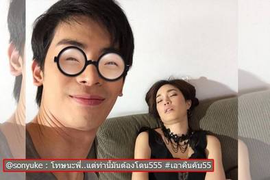 โดนแอบถ่ายท่านอนแบบไม่เป็นท่าอีกคน สำหรับนักแสดงสาวหน้าหมวยหุ่นแซ่บ อย่าง "เมย์-พิชญ์นาฏ สาขากร" ที่ล่าสุด โดนพระเอกหน้าหล่ออย่าง "สน-ยุกต์ ส่งไพศาล" แอบโพสต์รูปถ่ายขำๆ ลงอินสตาแกรม @sonyuke ซึ่งมันขำตรงที่ว่า หนุ่ม 'สน' ใส่แว่นตาเจ้าเล่ห์ตาตี่ ถ่ายขณะที่สาว 'เมย์' นอนหลับอ้าปากหวอเห็นๆ เลย หน้าตาประมาณว่าหลับลึกจริงๆ พร้อมข้อความแกล้งอีกว่า "โทษนะพี่...แต่ท่านี้มันต้องโดน555 #เอาคืนคับ55" รุ่นพี่ก็ไม่เว้นนะคะ บอกเลยผู้ชายคนนี้ไว้ใจไม่ได้ชัวร์