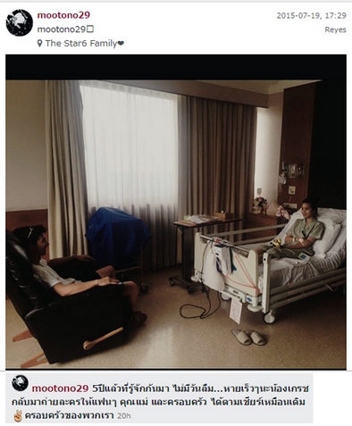 โดยนักร้อง-นักแสดงหนุ่มได้โพสต์ข้อความถึงรุ่นน้องจากเวทีเดอะสตาร์ 6 ที่ประสบอุบัติเหตุระหว่างถ่ายทำละครจนกระทั่งกระโหลกร้าวว่า.."5 ปีแล้วที่รู้จักกันมา ไม่มีวันลืม...หายเร็วๆนะน้องเกรซ กลับมาถ่ายละครให้แฟนๆ คุณแม่ และครอบครัว ได้ตามเชียร์เหมือนเดิม ครอบครัวของพวกเรา"