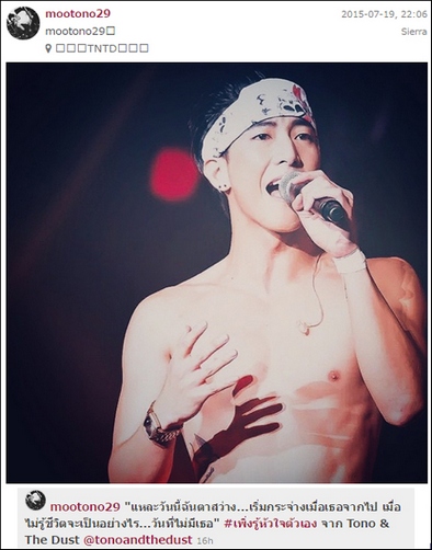 อย่างไรก็ตาม ในเวลาต่อมาทางด้านของหนุ่มโตโน่เองก็ได้โพสต์ข้อความซึ่งแม้จะมาจากเนื้อเพลงของตนเองแต่ก็ต้องบอกว่ามีความหมายให้ชวนคิดทีเดียวว่า..."แหละวันนี้ฉันตาสว่าง...เริ่มกระจ่างเมื่อเธอจากไป เมื่อไม่รู้ชีวิตจะเป็นอย่างไร...วันที่ไม่มีเธอ" #เพิ่งรู้หัวใจตัวเอง จาก Tono & The Dust"
