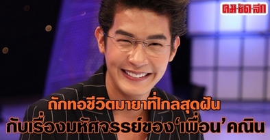 คนมองว่าเป็นพระเอก รู้สึกอย่างไร ก็งงๆ แต่จริงๆ บททุกบทมันสำคัญเท่ากันหมด แต่เราเล่นให้เต็มที่ก็พอแล้ว ต้องขอบคุณผู้ใหญ่ด้วยที่ให้บทดีๆ มา @มองวงการบันเทิงเป็นยังไง ก่อนเข้ามา เพื่อนมองว่าเป็นอะไรที่ฝืนตัวเองมากเลยนะ เพื่อนเกลียดกล้อง เกลียดการถือไมค์ เกลียดสายตาคนมอง ไม่อยากเป็นที่จับตามอง จะตื่นเต้นทุกครั้ง ตอนนี้ยังเป็นอยู่ แต่เพื่อนมองว่าเป็นเรื่องดีนะ ถ้าเราไปทำงานแล้วไม่ตื่นเต้นเลย มันน่าเบื่อ ตอนนี้ค่อนข้างปรับตัว ใครมองก็ไม่เป็นไร เพื่อนเริ่มมาจากการเป็นนายแบบ ตอนนั้นเป็นนายแบบก็แย่แล้ว แรกๆ ตื่นเต้นมาก ขนาดแค่เดินอย่างเดียว ยิ่งมาเล่นเอ็มวียิ่งหนัก คราวนี้มีกล้องด้วย มาถึงเป็นพระเอกเลย แบบงงอะไรเนี่ย (หัวเราะ) แล้วมาเล่นหนังดังสุดสัปดาห์ คราวนี้มีบทด้วย เอาแล้วไง เริ่มส่งเสียงแล้ว พอมาเล่นเป็นพระเอกมันต้องแบกทั้งเรื่อง ตื่นเต้น ทำไรไม่ถูก เขาโทรมาบอกเราได้เป็นพระเอกละคร ไม่ดีใจเลย มันเครียด พอไปกองวันแรกก็นับแล้วว่าวันไหนเสร็จ (หัวเราะ) แต่พอนานไป มันก็ดีขึ้นนะ เริ่มรู้สึกชอบ เคยมาคิดนะว่าเราทำอะไรอยู่ เพื่อนไม่ชอบคำว่าเรามาทำงาน รู้สึกว่าเร็วไป พอใครถามไปทำไร บอกไปทำงาน เฮ้ย ทำงานแล้วเหรอ ดูเป็นจริงเป็นจัง แต่พอทำจริงๆ มันสนุก วันหนึ่งผ่านไปแป๊บเดียว