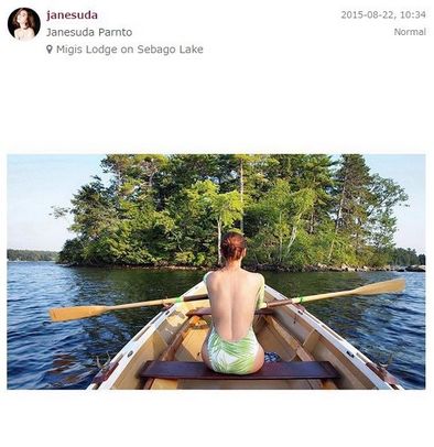 ล่าสุดกับการบินลัดฟ้าไปทำงานที่นิวยอร์ก สหรัฐอเมริกาพร้อมหวานใจ ที่พอมีเวลาว่างปุ๊บสาวเจนก็ขอไปพายเรือชมวิวในทะเลสาบ Sebago Lake State Park ในชุดว่ายน้ำวันพีซเเขนยาวสีเขียวสดใส มองเพียงผิวเผินก็อาจจะไม่มีอะไร เเต่พอสาวเจนหันหลังมาเท่านั้นเเหละ โอ้วเเม่เจ้าเซ็กซี่เว่อร์ เพราะเป็นชุดหลังเว้าโชว์แผ่นหลังเนียน ๆ จนถึงเอวเลยทีเดียว