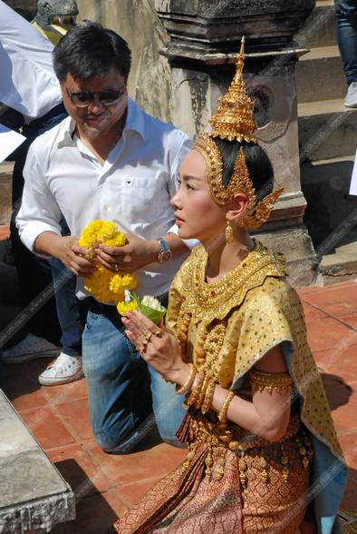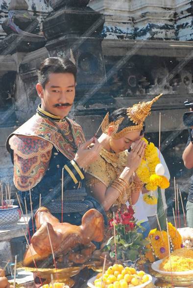 เป็นเรื่องที่อิงประวัติศาสตร์กังวลหรือเกร็งมั้ย? “ก็คงอินไปตามบทละครค่ะ ก็อ่านบทและทำความเข้าใจกัน เรื่องนี้ยากค่ะ ยากมาก เพราะต้องเล่นเป็น 3 คาแรกเตอร์” จะมีโอกาสมาสักการะสิ่งศักดิ์สิทธิ์ที่นี่มั้ย? “มีโอกาสก็มาอยู่แล้วค่ะ อย่างวันเกิด เพราะนุ่นก็ชอบมาอยุธยา อยู่ใกล้กรุงเทพฯ นะคะ แล้วเวลามาก็รู้สึกสดชื่น ได้เห็นสีเขียวๆ เห็นวัด อยุธยาเป็นเมืองที่มีความสมบูรณ์ด้านพุทธศาสนารุ่งเรืองมากๆ เพราะว่าจริงๆ นุ่นก็เคยไปประเทศพม่า เมืองอังวะ ที่มาตีกรุงศรีจริงๆ เคยไปถ่ายรายการ อย่างร้อยเปอร์เซ็นต์เค้าแทบไม่เหลือ เหลือแค่ 2 เปอร์เซ็นต์อะไรอย่างนี้ แต่ว่าของเราคงงดงามมากในสมัยที่รุ่งเรือง สมัยที่ยังไม่มีการเปลี่ยนแปลงค่ะ” มีการพกเครื่องรางของขลังมั้ย? “ไม่มีค่ะ นุ่นใช้จิตใจเป็นเครื่องยึดเหนี่ยวค่ะ ทุกครั้งที่มีการถ่ายก็จะนึกถึงด้วยความเคารพค่ะ คือทุกๆ อย่าง ในทุกๆ เรื่อง ไม่ใช่แค่เรื่องนี้ ก็จะนึกถึงครูบาอาจารย์ ก็จะขอให้การถ่ายทำราบรื่น ดำเนินไปได้ด้วยเร็ว”
