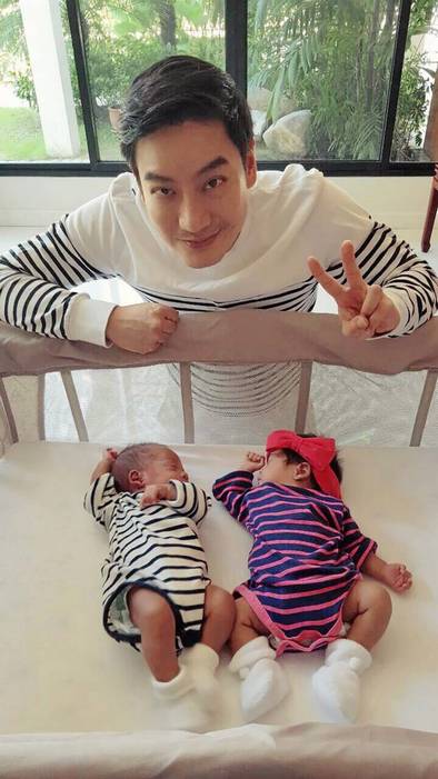คุณพ่อคุณแม่ แอบขำพฤติกรรมลูกสองคนบ้างมั้ย “ดีใจทุกครั้งที่เจอเค้า เข้าใจแล้วพ่อแม่ทำไมถึงได้ตายแทนลูกได้ ทำไมถึงอุทิศเวลาให้กับลูกได้ เพราะเค้าคือส่วนหนึ่ง ของเรา เค้าเอาส่วนหนึ่งของเราไปกับอีกคนนึงที่เรารักไปรวมกัน เพราะฉะนั้นเค้าคือหัวใจของเราที่ออกมาอยู่ข้างนอก เป็นห่วงจริงๆนะ ต่อไปนี้ไม่ใช่ แค่ตัวเรา ทำอะไรต้องนึกถึงสองคนนี้” การเลี้ยงลูกแบ่งหน้าที่กันยังไงบ้าง “ผมกับโอปอล์ตั้งใจดูแล กันเอง มีพี่เลี้ยงแต่เป็นแค่ผู้ช่วย ผมเชื่อรากฐานสำคัญ ของเด็กก็คือพ่อแม่ ต่อให้ทำงานเรารับเท่าที่จำเป็นเราก็อยู่กับเค้าให้มากที่สุด โอปอล์ปั๊มน้ำนมเก็บใน สต๊อก นับถือเค้าขนาดลูกแฝดน้ำนมยังพอทุกมื้อ เก่งมากและลดน้ำหนักได้ดีมาก ลดอาหาร ตัดอาหาร ไม่มีประโยชน์ ขนมอะไร ลดไปเร็ว 10โล”.