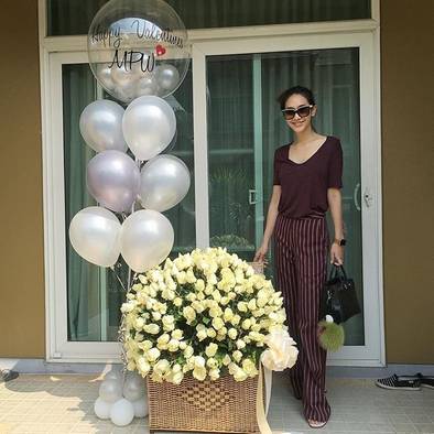 “ก็ตามรูปเลยค่ะ (ยิ้ม) ลงขอบคุณค่ะ จริง ๆ ก็ไม่ได้เปิดตัวนะคะ เพราะเขาไม่ได้อยู่เมืองไทยอยู่แล้ว เหมือนเขาส่งมาแล้วหนึ่งปี และปีนี้ก็ยังมาอีกก็ถือว่ามั่นคง (ยิ้ม) ก็โอเคปีนี้รู้สึกว่าอยากลงขอบคุณ เพราะเรารู้สึกว่าเขาค่อนข้างจะให้เกียรติมินนะ ทั้ง ๆ ที่เราก็อาจจะไม่ค่อยมีเวลาได้ตอบเท่าไหร่ หรือหลาย ๆ อย่างเขาก็พร้อมจะดูแล สถานะก็บอกไม่ถูกเหมือนกัน ต้องถามเขา รอเขามาไทยดีกว่าค่ะ (ยิ้ม)”