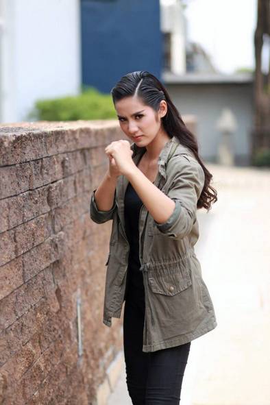 กับเรื่องทอง 10 บทสาว เคียวโกะ? “เรียกว่าเป็นละครบู๊เต็มตัวเรื่องแรกใช้วิทยายุทธ์ทั้งร่างกายและจิตใจ ศิลปะป้องกันตัวทั้งแนวไทยและญี่ปุ่น ทั้งปืน เราชอบออกกำลังอยู่แล้วแต่ต้องทำท่าให้แข็งแรง ทั้งพี่เอก-รังสิโรจน์ พี่กอล์ฟ-อนุวัฒน์ ก็ช่วย ส่วนใหญ่เจอละครบู๊เข้าป่าจนชิน เป็นคนลุยๆอยู่แล้ว ขุนกระทิงก็มีบู๊บ้าง” เรียกว่าเป็นนางเอกขาลุย? “ชอบนะคะ มันสนุกท้าทาย กองอาฉลอง ภักดีวิจิตร เค้าระเบิดกันแบบสะเทือนจริง การทำงานกับอาหลองก็เหมือนได้ฝึกความรับผิดชอบ อาหลองทำงานเช้ายันเช้า ทำงานหนักกว่าเราอีก อายุท่านก็เยอะแล้วยังอดทนขนาดนี้เรายังเป็นเด็ก การแสดงอาก็จะสอน ไม่ว่าเราจะบู๊ยังไงแต่เราก็ต้องมีอินเนอร์ตัวละคร”