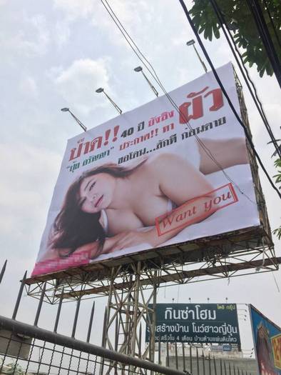 เมื่อความต้องการ ไม่เคยปรานีใคร ปุ้ย อรัญญา ประทุมทอง ดารารุ่นใหญ่วัย 45 อ้างว่าโสดๆ ซิงๆ ยังไม่เคยโดนฟีเจอริ่งกับหนุ่มหน้าไหนมาก่อน เลยเป็นที่มาของป้ายบิลบอร์ดขนาดใหญ่ ย่านถนนเกษตร-นวมินทร์ ที่ฮือฮากันบนโซเชียล...
