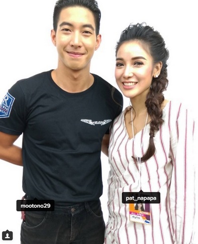 “กับคนนี้ก็ยอมรับว่าสนิทกว่าพี่โน่ แพทมาสายนี้อยู่แล้ว แพทยอมรับว่าแพทชอบมอเตอร์ไซค์ ซึ่งพี่คนนี้เขาเป็นนักแข่ง เราก็จะคุยกันรู้เรื่องมากกว่าทุกคน ก็เท่านั้นเอง เรื่องข่าวอะไรต่างๆ เขาก็ไม่ยุ่ง งานก็คืองาน เขาแฮปปี้ถ้าเราจะจิ้นกับพี่โน่ แล้วถ้าวันหนึ่งมันโอเคเขาก็ไม่ได้ว่าอะไร เราก็ยังดูๆ กันไปเรื่อย เป็นการให้โอกาสซึ่งกันและกันมากกว่า(เห็นว่าเขาตามไปถ่ายรูปเราทุกงานอีเวนต์ด้วย?)มาเป็นเพื่อนมากกว่าค่ะ อย่างกับพี่โน่หลายคนสงสัย มีดราม่านั่นนี่จะบอกว่ากับพี่โน่เราคุยกันเฉพาะเรื่องงานจริงๆ นอกเหนือจากนั้นเราเคยคุยกันหลายรอบแล้วว่ามันจะเป็นยังไง บทสรุปสุดท้ายของเราสองคนคือเราเป็นเพื่อนที่ดีต่อกัน แต่เราก็พูดเหมือนกันเสมอว่าอนาคตไม่รู้ ณ ตอนนี้เราสบายใจกันทั้งคู่ที่จะเป็นเพื่อนคอยอยู่ข้างกัน เราทั้งคู่ยังไม่พร้อมที่จะเริ่มต้นใหม่”