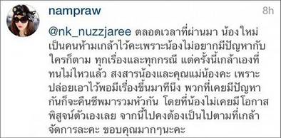 เพราะอย่างนี้ เลยต้องร้อนถึงผู้จัดการของสาวใหม่ ดาวิกา พี่เกล้าของน้องใหม่จึงนำคลิปพร้อมข้อความที่อธิบายยาวเหยียดลงในอินสตาแกรมส่วนตัวเพื่อปกป้องเด็กในความดูแลของตนเองว่า