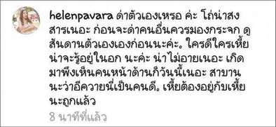 และหลังจากที่ผู้จัดการของใหม่ ดาวิกา ได้ลงข้อความดังกล่าวไป คู่กรณีในอดีตของใหม่และผู้จัดการส่วนตัว อย่าง เฮเลน ปวรา ศิริสาร ก็ลงภาพช้าง พร้อมข้อความว่า ช้างตกมัน หลังจากนั้นก็มีผู้ที่ใช้อินสตาแกรมชื่อว่า siriaujung โพสต์ข้อความว่า รู้สึกอีป้าเฮเลนจะพ่นไฟแล้วนะ #คนแก่รังแกเด็ก และทางผู้จัดการส่วนตัวของใหม่ ดาวิกา ก็มาตอบข้อความถึง siriaujung ว่า อย่าไปสนใจหรือเอามาอยู่ในสายตาเลยค่ะ คนอยู่ส่วนคน...ผีอยู่ส่วนผี ตอนแรกคิดว่าเป็นเจ้ากรรมนายเวรน้องใหม่ สรุปไม่ใช่...เป็นผีไม่มีญาติ ไม่มีหัวนอนปลายเท้านั่นเองค่ะ คงไม่น่าจะได้ผุดได้เกิดอีกแล้วชาตินี้ทำกรรมเยอะเกิน