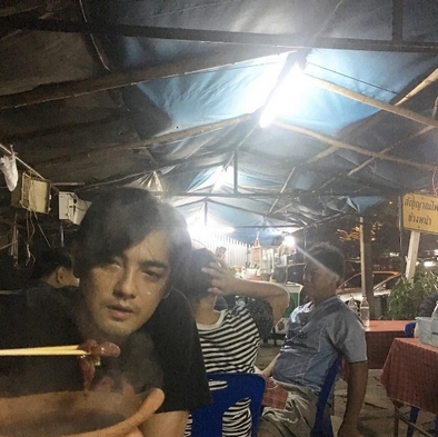 ล่าสุด พระเอกหนุ่มยังคงความติดดิน ถึงขั้นไปกิน"จิ้มจุ่ม" อาหารตำรับอีสานข้างทางรถไฟคนเดียว โดยหนุ่มโพสต์รูปพร้อมข้อความว่า "คนเดียวก้อเฟี้ยวได้ #จิ้มจุ่ม #ทางรถไฟ"