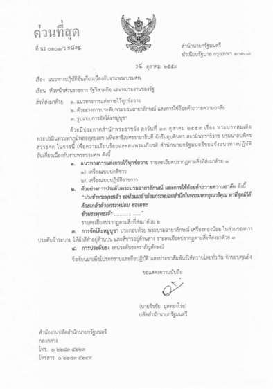 2.1 กรณีแต่งเครื่องแบบปฏิบัติราชการ (เครื่องแบบสีกากีคอพับ และเครื่องแบบสีกากีคอแบะ) การแต่งเครื่องแบบ ไม่ต้องใช้ผ้าสักหลาด หรือผ้าโปร่งสีดำดังกล่าวพันแขนเสื้อซ้ายเบื้องบน