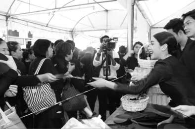 "จริงๆ วันนี้ตอนแรกตั้งใจมาร่วมต่อแถวเข้าไปถวายสักการะพระบรมศพ พอมาถึงแถวยาวมาก เราก็มาเมื่อไหร่ก็ได้ เพราะเราอยู่ในกรุงเทพฯ ค่ะ อยากเสียสละให้กับคนต่างจังหวัดเข้าไปก่อน ก็มาเดินแจกพัด แจกน้ำ แจกโบค่ะ ให้กำลังใจถ่ายรูปค่ะ มินว่าเป็นปรากฏการณ์ที่คนไทยมาแสดงน้ำใจกันเยอะขนาดนี้ เป็นอะไรที่ดีมาก เพราะสิ่งที่ท่านหลงเหลือไว้ให้กับเราก็คงจะเป็นความดีแล้วก็ความรักที่ทำให้พี่น้องเรารักกันโดยไม่มีเงื่อนไข แล้วก็อยากที่จะลุกขึ้นมาทำความดีกัน วันนี้ก็เห็นได้ชัดว่าคนไทยทุกคนก็ทำด้วยใจจริงๆ ไม่ว่าจะเป็นอาสาน้องๆ ลูกเสือเนตรนารี เข็นรถเข็นกัน ทุกคนก็มาโดยที่อยากทำความดี"
