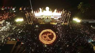 บรรยากาศงาน “76 ล้านดวงใจ อาลัยพ่อ” ซึ่งจัดขึ้นบริเวณถนนเลียบชายหาด เมืองพัทยา มีประชาชนมาร่วมจุดเทียน - ร้องเพลงสรรเสริญพระบารมี ถวายอาลัยพระบาทสมเด็จพระปรมินทรมหาภูมิพลอดุลยเดช นับหมื่นคน โดยภายในงานยังได้จัดนิทรรศการเทิดพระเกียรติในหลวง ร.๙ จากฝีมือของนักเรียนโรงเรียนต่างๆ ของเมืองพัทยา