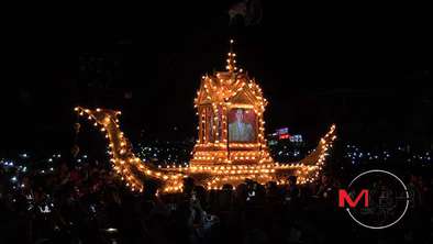 หลังจากนั้น ก็ได้มีพิธีอัญเชิญพระบรมฉายาลักษณ์บนเรือที่ตกแต่งอย่างสวยงามขึ้นบนเวที ผ่านประชาชนที่มาร่วมกันไว้อาลัย พร้อมยังได้น้องๆ จากโรงเรียนสอนคนตาบอดพระมหาไถ่พัทยา ร่วมกันร้องเพลง “ในหลวงของแผ่นดิน” และในท้ายของงานประชาชนร่วมกันจุดเทียน พร้อมร้องเพลง “สรรเสริญพระบารมี” ที่ได้วงวีทรีโอ และวงจีบคนกรุงเทพฯ ร่วมกันบรรเลง