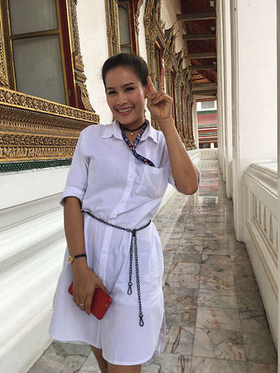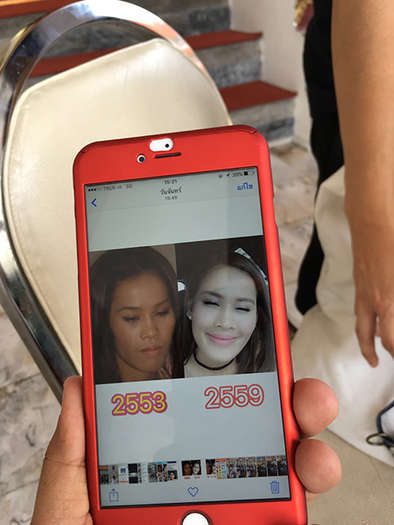 “คุณหมอที่เรารู้จักสนิทกัน คุณหมอบอกว่าอายุ 40 ต้องไปเสริมดั้งนะ เพราะว่าเป็นเรื่องโหวงเฮ้ง ต้องไปเติม ตอนนี้ก็ 30 แล้ว อีก 10 ปีจะสวย (หัวเราะ) แต่รู้สึกว่าที่เราเป็นทุกวันนี้มันอาจจะเกิดจากราศี เพราะเราไม่ได้ทำเลย ขาวขึ้นเอง จากปกติดำปี๊ ดำมาก ฟันก็ยื่น ไม่ได้ทำอะไรเลยมันก็ค่อยๆ ขาวขึ้นๆ แต่ผู้ใหญ่บอกว่าเกิดจากราศี ถ้าเราจิตใจดีมันก็จะใสขึ้นๆ (แสดงว่าทำบุญหนักมาก?) ใช่ค่ะ งานบุญถ้าเชิญ เราไปหมดถ้าว่าง 7 วันไปงานบุญ 4 - 5 วัน เรื่องทำบุญขอให้บอก แต่เอาจริงๆ แค่นี้ก็รู้สึกว่าพอแล้ว มีหลายรายการหลายทีมงานติดต่อมาให้ไปทำที่เกาหลี ทำฟรีทั้งหน้าเลย เราก็บอกว่าไม่เป็นไรค่ะ แค่นี้เราพอแล้ว อีกอย่างเราก็คิดว่าถ้าเราทำแล้วงานมันหดด้วยไหม และก็คิดว่าที่เขาจ้างเราเพราะเราเป็นแบบนี้ ก็ไม่ต้องไปทำอะไร แต่ถ้าเรื่องเสริมดั้ง ถ้าเสริมก็ได้คงไม่ใช่เรื่องแปลก เรามีอยู่แล้วแค่ไปเติมตรงที่มันหายไป”
