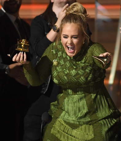 อะเดล ยังกลายเป็นราชินีรางวัลแกรมมีด้วยวัย 28 ปี จากผลงานเพลง 3 อัลบั้มที่คว้ารางวัลสถาบันใหญ่นี้ไปได้ถึง 15 รางวัล จากการเข้าชิงรางวัลทั้งหมด 18 ครั้ง