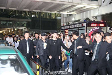 “ยังเหมือนเดิมที่แฟนคลับชาวจีนค่อนข้างเหนียวแน่น เลยจะต้องใช้การ์ดเยอะ ไม่แน่ใจว่าถึง 100 คนรึเปล่า แต่ว่าแน่นสนามบินพอสมควร ตอนแรกที่เห็นก็ตกใจเหมือนกัน แต่ในเรื่องของความปลอดภัยเขาก็ต้องเข้มงวดไว้ก่อน เพราะงานมีตติ้งก่อนหน้านั้นก็มีปัญหาของการดูแลความปลอดภัย เขาเลยอาจจะเข้มงวดเรื่องการดูแลความปลอดภัยกันมากขึ้น เขากลัวว่าแฟนคลับจะมีปัญหากันเอง ก็เลยจะต้องคอยระวังเรื่องของแฟนคลับด้วยกันเองและของเรา ไม่ถึงขนาดเข้าจู่โจม แต่ด้วยแฟนคลับเยอะมากและการจะควบคุมแฟนคลับจำนวนมากๆ ค่อนข้างทำได้ยาก”