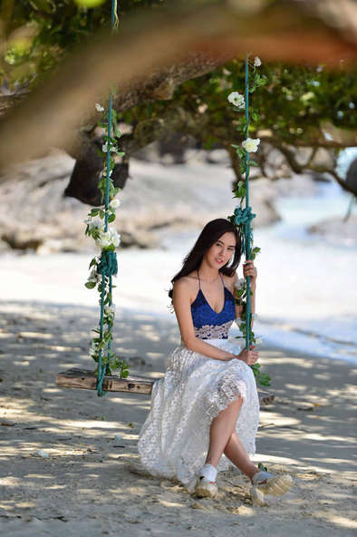สิ่งนึงที่สร้างความฮือฮาพีคใส่ชุดว่ายน้ำแบบจัดเต็ม มาก “กล้าแบบครึ่งๆ ยังไม่ขนาดนั้นเพราะเป็นฉากอยู่ทะเล ชีวิตจริงคนเราเวลาว่ายน้ำคงใส่อะไรที่สะดวกในการว่ายน้ำปกติ พีคมองว่ามันก็สมเหตุสมผลเพราะเราอยู่ทะเลใช้ชีวิตแบบนั้นจริงๆ ภาพที่ออกมาค่อนข้างสมจริง เลยโอเคใส่ได้” ชุดว่ายน้ำขนมาเองเลย “ค่ะ พีคขนเสื้อผ้ามากองเยอะมาก เพิ่งขนกลับไปเอง อองฟองบ่นเลยว่าทำไมอาพีคเอาเสื้อผ้าไปหมดเลย หมดตู้เลย คือในชีวิตประจำวันพีคจะเป็นคนแต่งตัวสบายๆ อย่างพีคจะมีเสื้อผ้าเหมือนของดีไซเนอร์ต่างๆ ที่ เป็นแนวเปรี้ยวๆ เค้าตัดมาไซส์ของพีคจะมีเก็บในตู้เยอะมาก พีคเลยถือโอกาสนำมาใช้เลย เราเป็นคนตัวเล็กถ้าใส่เสื้อผ้าที่พอดีเราจะมั่นใจจะดูพอดี ถ้าใส่หลวมไปดูตัวเล็ก เลยขนไปเอง” เป็นแบบนี้ทุกเรื่องมั้ยที่ขนเสื้อผ้าไปเอง “ถ้าคาแรกเตอร์ที่ตัวละครตัวนี้นึกภาพออกเราขนเสื้อผ้าไปได้ แต่บางเรื่องมันไม่ใช่แบบที่พีคมีก็ไม่ได้ใช้” ส่วนใหญ่จะเห็นพีคใส่ขาสั้นตลอดๆ “ชีวิตประจำวันก็ใส่ แต่ในเรื่องนี้จะใส่ขาสั้นตอนอยู่ทะเล ถ้าพีคใส่ขาสั้น เสื้อจะใส่โคร่งๆ แต่เรื่องนี้ไม่ใช่แค่รัดรูปแบบเปิดเลยอาจจะตกใจกันนิดนึง อาจจะเป็นเราตัวเล็กๆอาจจะไม่มีอะไรมากมาย (หัวเราะ)” ที่เห็นตู้มๆเป็นของจริงทั้งหมดหรือมีตัวช่วย “ของจริงค่ะ ตามทรงของเสื้อค่ะ (หัวเราะ)” ตอนใส่ชุดว่ายน้ำ พอร์ชถึงขั้นไม่กล้ามอง “ตอนถ่ายจะไม่คิดตรงนั้น เพราะคิดเราจะทำงานไม่ได้ เป็นช่วงสั้นๆ ก่อนถ่ายจะปิดอยู่แล้ว เล่นเสร็จก็เอาเสื้อปิด”