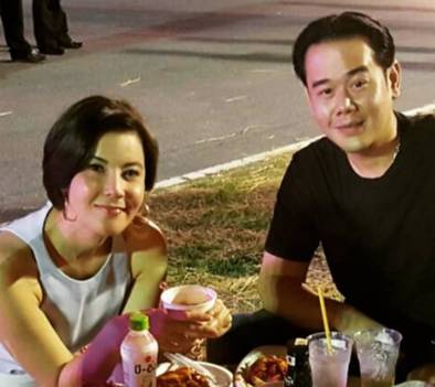จะคุยเรื่องนี้กับพี่เป๊กไหม? "ไม่คุยนะ คือว่ามันเป็นเรื่องที่ไร้สาระ เราเองเรายังไม่เคยได้ยินข่าวนี้เลย" มีแพลนจะควงกันไปเที่ยวไหม? "ปกติไปต่างประเทศทุกสิ้นปีอยู่แล้ว ไปเยี่ยมคุณพ่อคุณแม่นะ ไปกันปกติ ถามว่าพี่เป๊กทราบไหมเรื่องข่าว ไม่ได้พูดเรื่องนี้กันเลย ข่าวเพิ่งรู้ตอนนี้เลย"